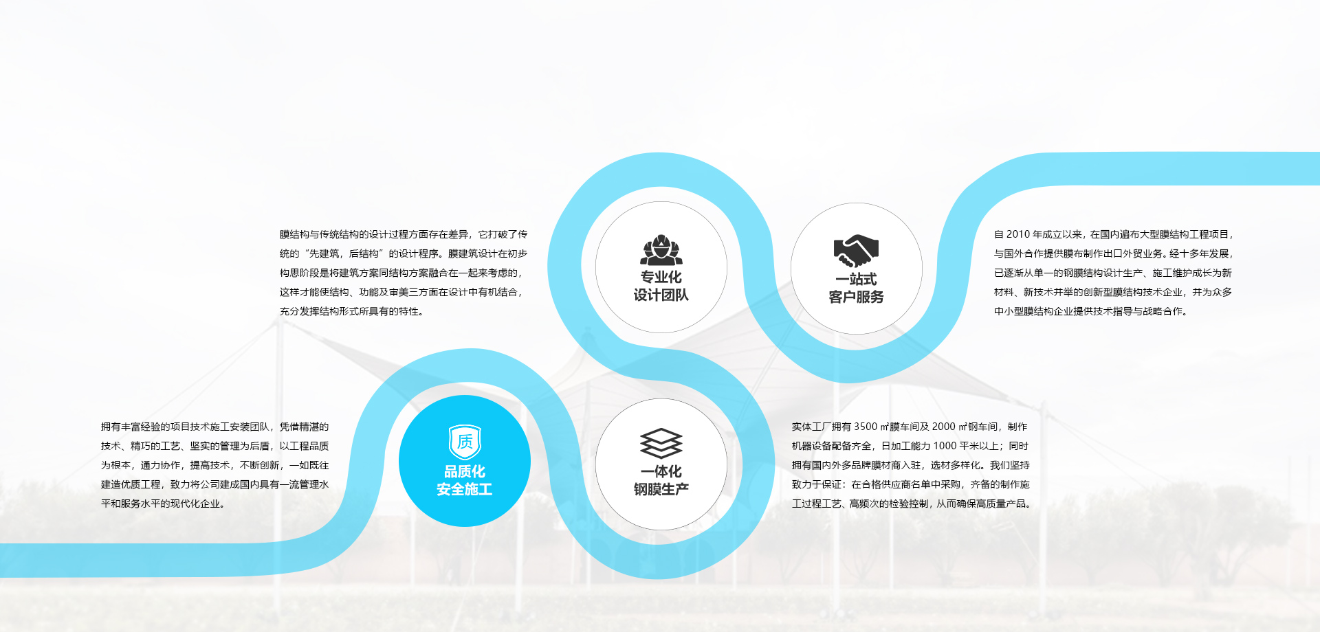 追求每一個(gè)細(xì)節(jié),為您提供更優(yōu)質(zhì)的膜結(jié)構(gòu)定制服務(wù)