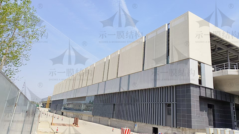今天小編就想帶著大家來了解一下膜結構建筑工程中膜布的安裝步驟。膜布的安裝可以大致分四部分來說。