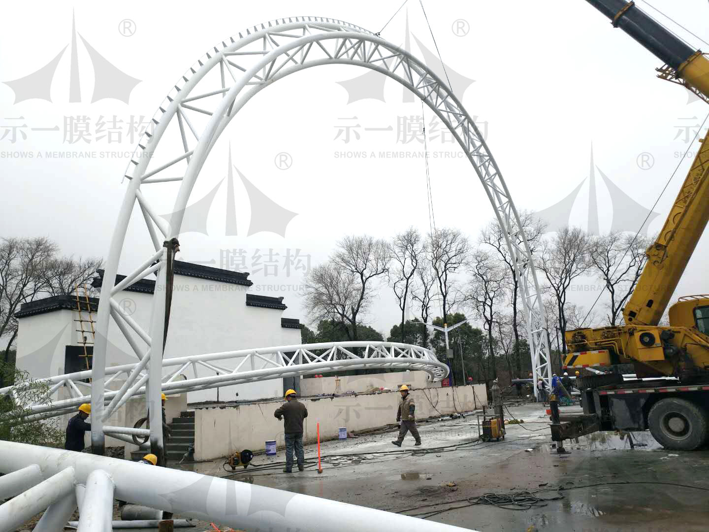 2、膜結構的連接構造設計應考慮施加預張力的方式、支承結構安裝允許偏差,以及進行二次張拉的可能性。