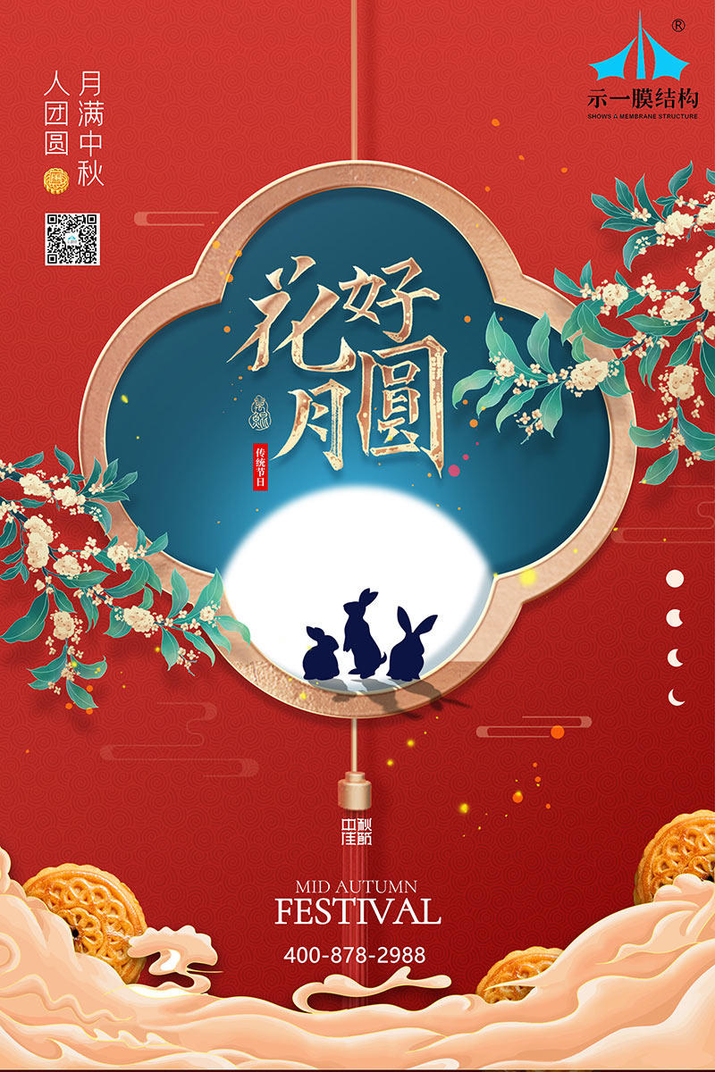 來秋高氣爽,桂花飄香,值此中秋佳節來臨之際,上海示一膜結構有限公司祝福大家中秋節快樂,闔家幸福!