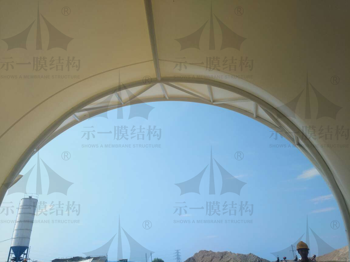 此次環保工程運用了鋼管結構搭配PVDF膜材組建而成。外形大氣,實用效果強。
