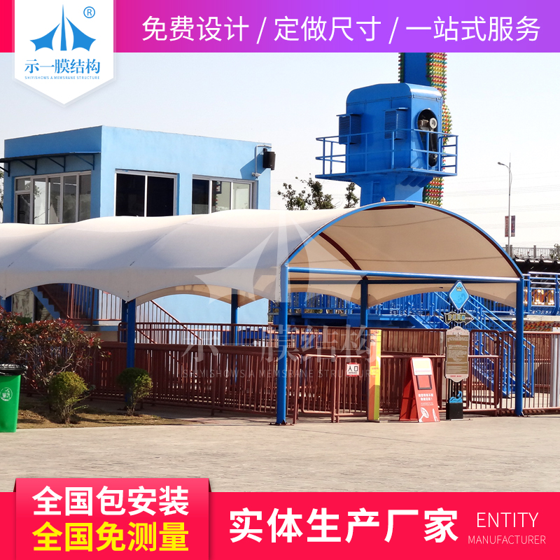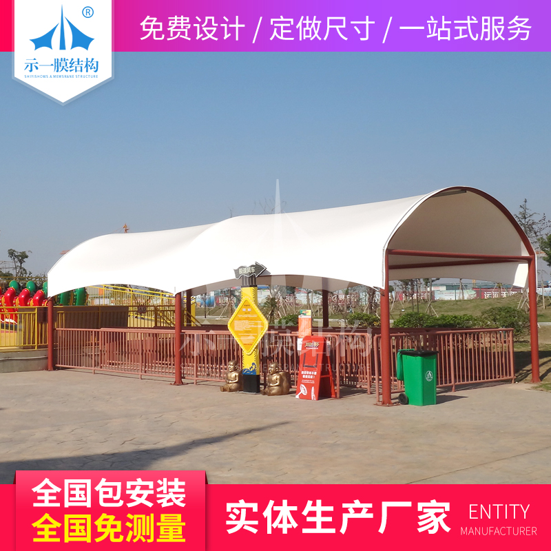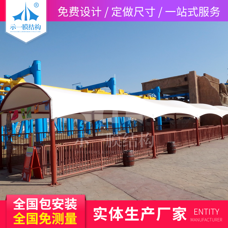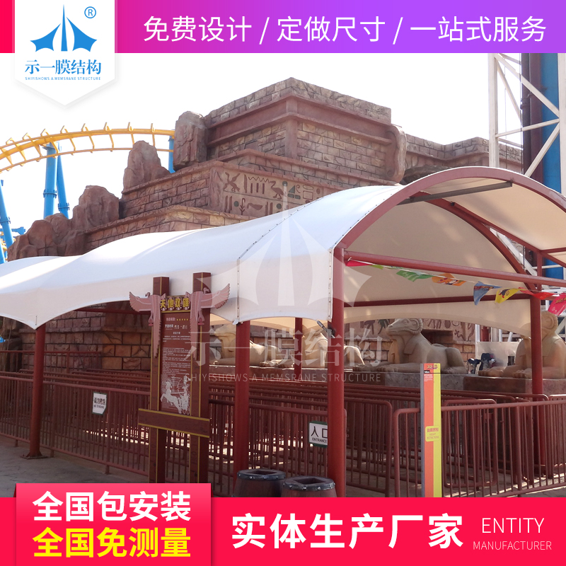 夏季比雨水更煩的肯定是高溫,太陽直曬真的傷不起,不僅會曬黑,重點是曬傷啊,所以暑假季出門游玩,最怕就是景點排隊的時刻,人多的話真不是一項好活啊,如果這時候有一個等候點的膜結構遮陽雨棚,是不是就好了很多,起碼能解放撐傘的手打個扇子或者喝下水,不行還能來個自拍,發個微信求安慰。。。不知道你有沒有去過宿遷克拉嗨谷,那里就有好幾個由上海示一膜結構承接的等候區膜結構遮陽雨棚,上個圖先看看。