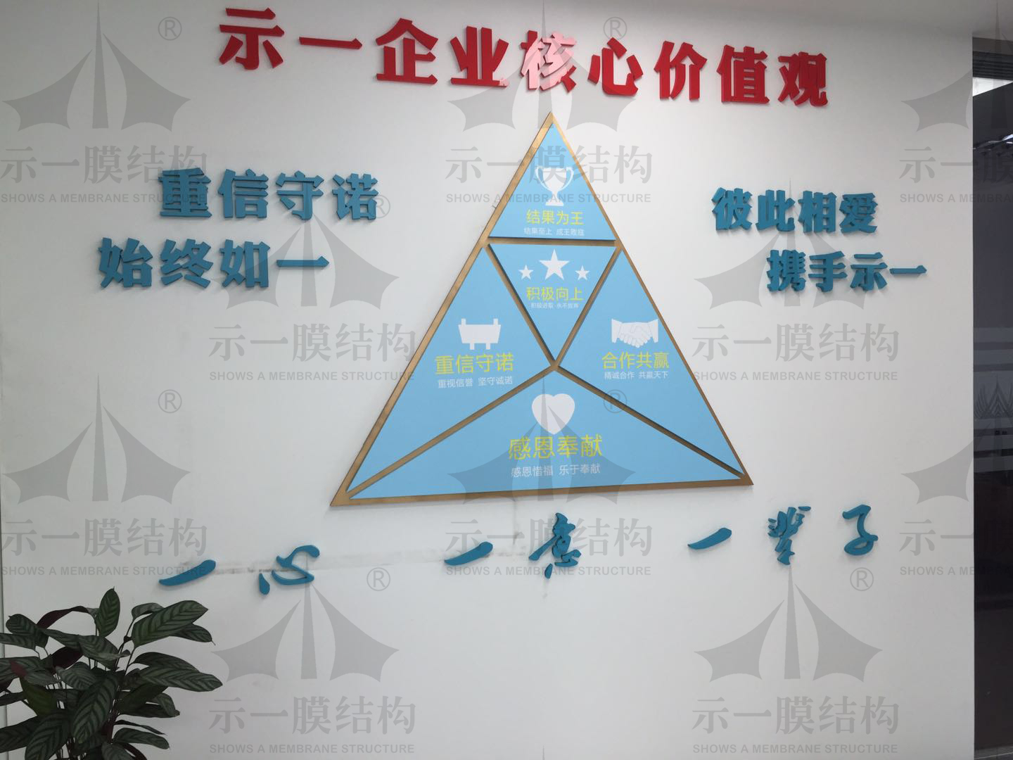 在上海示一膜結(jié)構(gòu)有限公司我們感受到了濃濃的企業(yè)文化,讓我們團(tuán)結(jié)一致緊緊圍繞示一企業(yè)核心價(jià)值觀,攜手共同進(jìn)步。一心一意一輩子,我們堅(jiān)守承諾,竭盡全力,齊心協(xié)力,向世界展示我們眾人如同一人,共創(chuàng)輝煌示一。