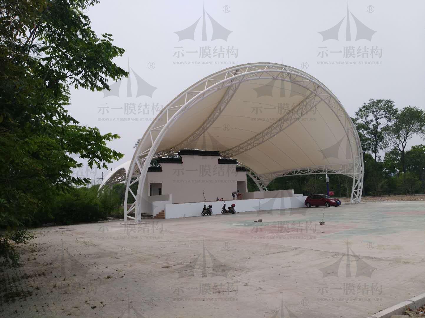 四、松江廣富林遺址公園內(nèi)馬鞍造型的膜結(jié)構(gòu)舞臺(tái),采用膜結(jié)構(gòu)包裹住舞臺(tái)的整體設(shè)計(jì),防風(fēng)擋雨遮陽(yáng)。上海的旅游景點(diǎn)又多了一個(gè)新去處。