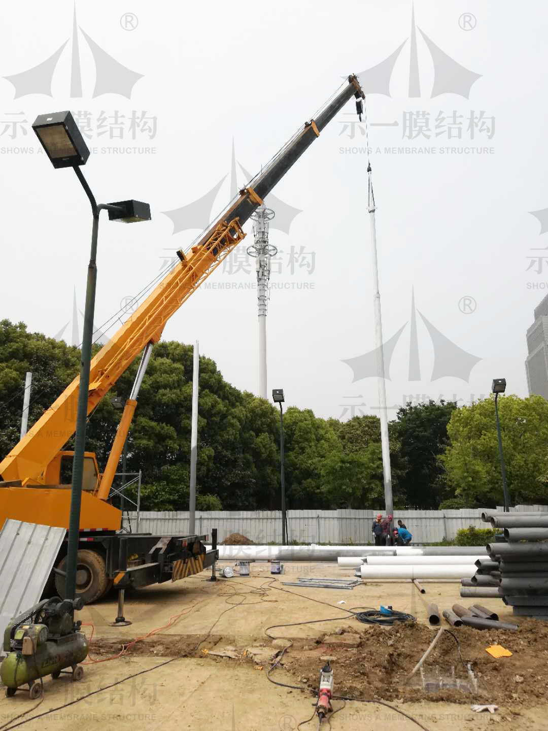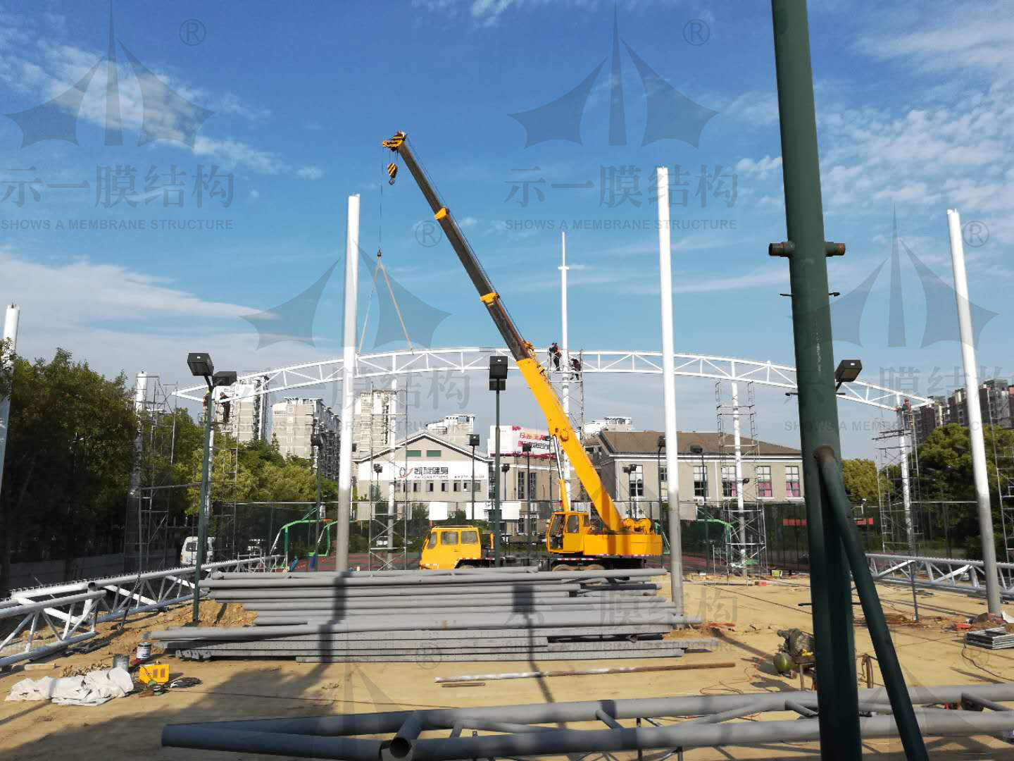 上海示一膜結構有限公司的工人們正在某個工地上開工,他們充分發揮著團結精神,彼此共同努力,攜手共進打造有品質,有魅力的安全環保的膜結構建筑。我們一起為他們加油~~
