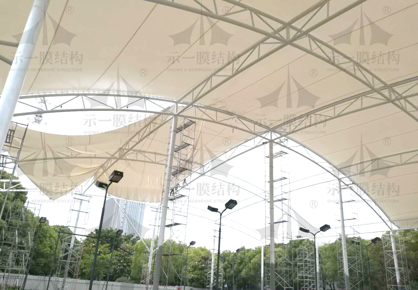 看著一個嶄新又美麗的膜結構建筑一點點慢慢的建造起來,小編的心情是既激動又感動。雖然小編沒有去工地現場,但是從前線傳來的每張照片都讓我們能留下美好的回憶。每一個膜結構工程的背后總有著一群善良可愛的人,這其中也有著無數的汗水和艱辛。當節假日遇上工期他們依然放棄了休息,奮斗在工地現場。他們沒有任何怨言,認真工作按期完工保證質量成為他們的最大目標。我們示一就有這樣一群值得夸獎的伙伴們。
