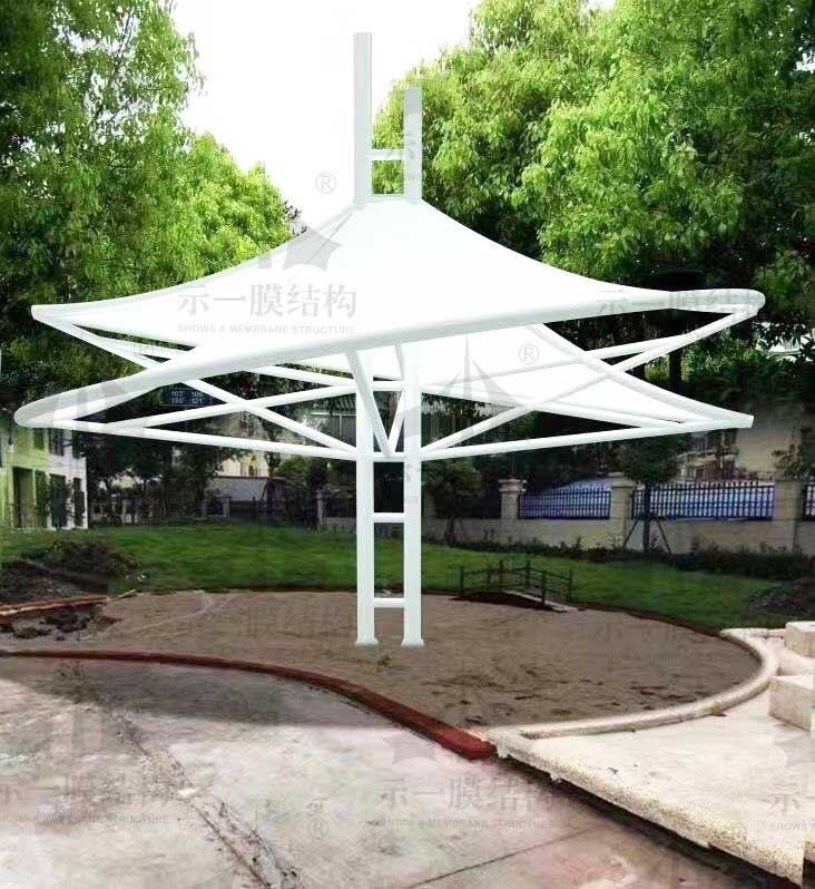 膜結構建筑不知不覺中從城市的各個領域發展到了幼兒園、學校等地方,在校園里我們經常能看到的是各種造型的膜結構景觀遮陽棚,膜結構張拉棚等等。