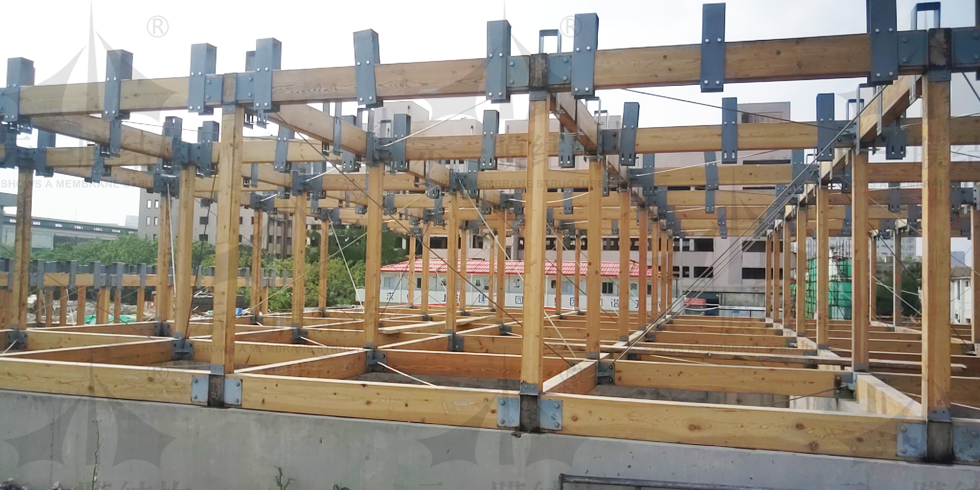 浦江充氣枕主體木結(jié)構(gòu)工程目前已經(jīng)完成第一階段的安裝部分,鋼結(jié)構(gòu)部分用量3.6噸,鋁合金專(zhuān)用型材750米。后續(xù)安裝仍在進(jìn)行中,敬請(qǐng)期待。