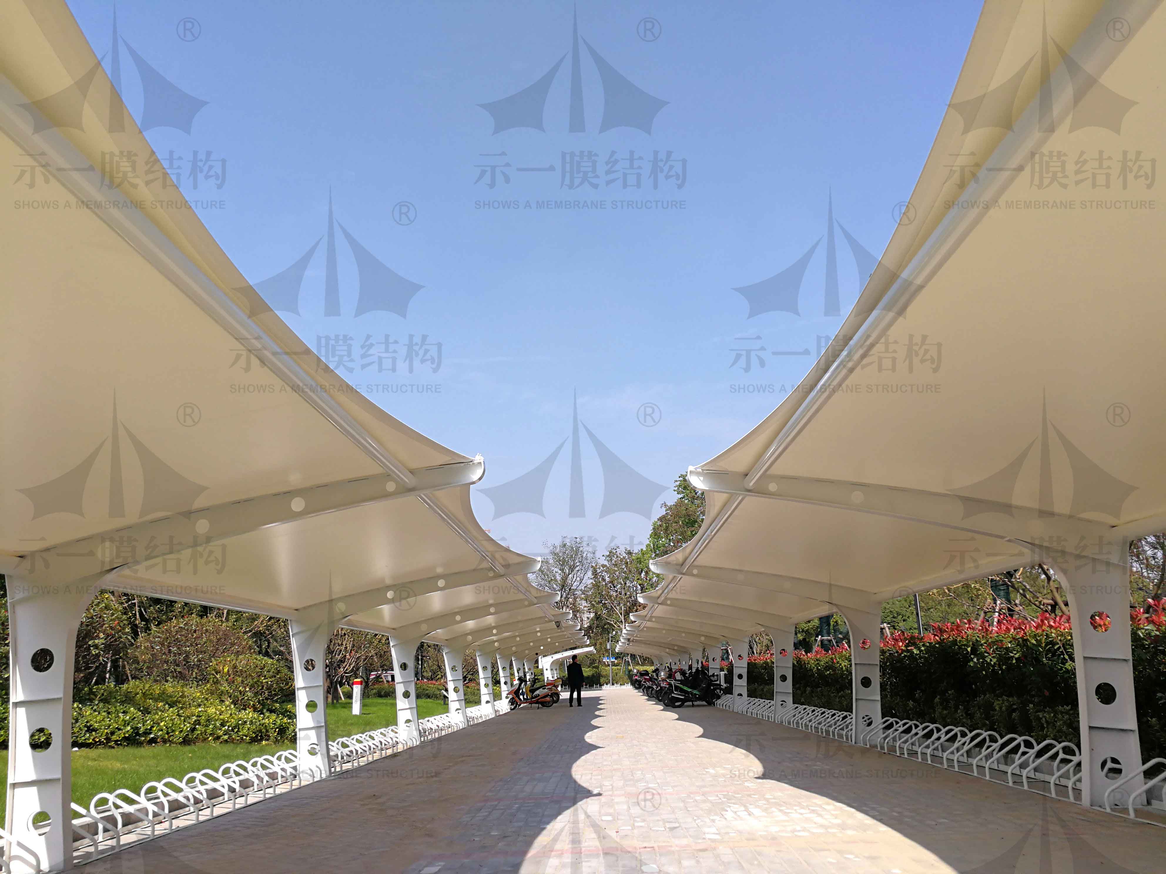 示一膜結構小編之前介紹了很多關于膜結構車棚的知識點,示一膜結構公司在膜結構車棚制作上也是非常有經驗的。我們制作的膜結構車棚分布各個地區和領域。