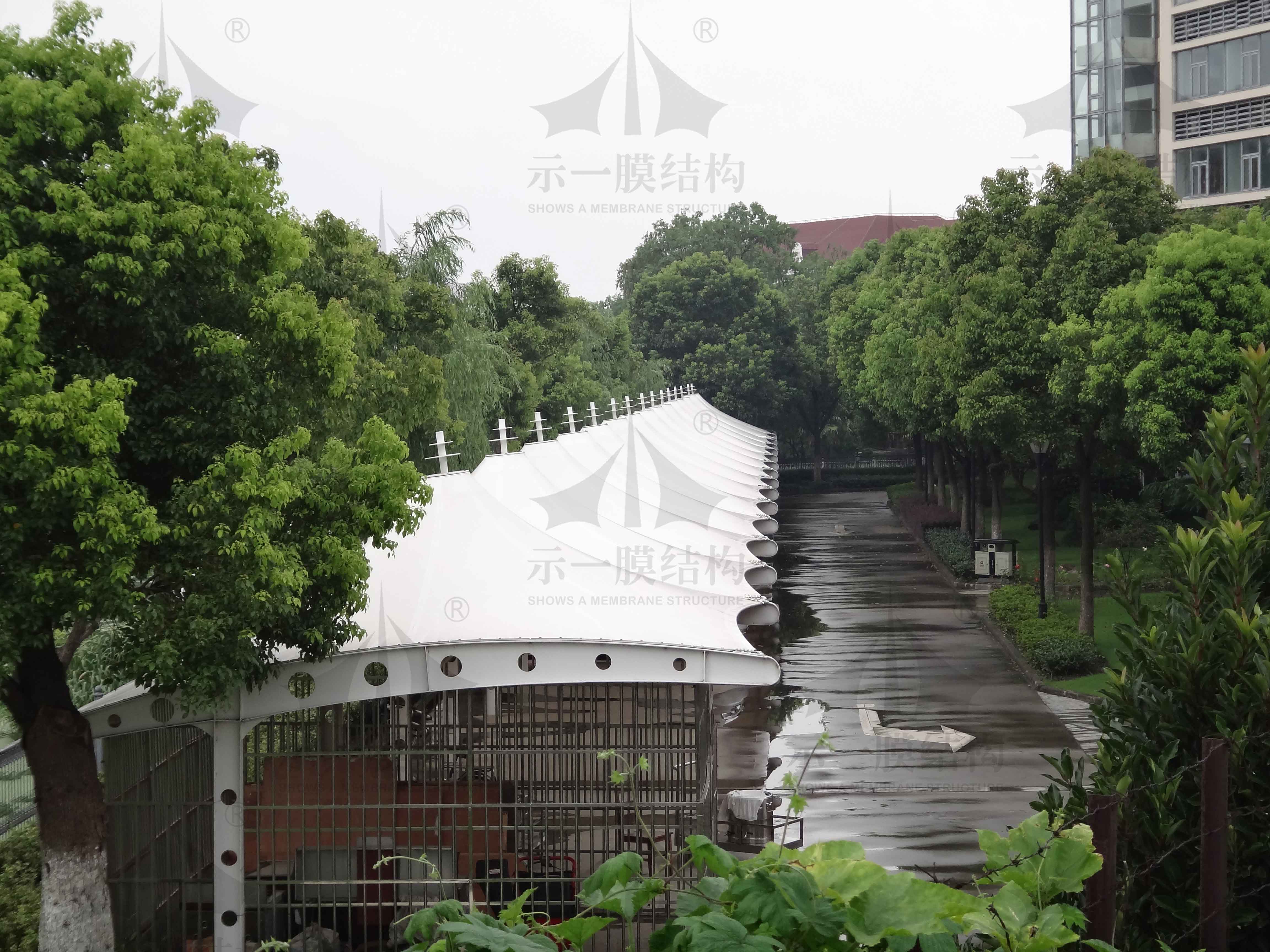 雨中的膜結(jié)構(gòu)停車棚用處多多