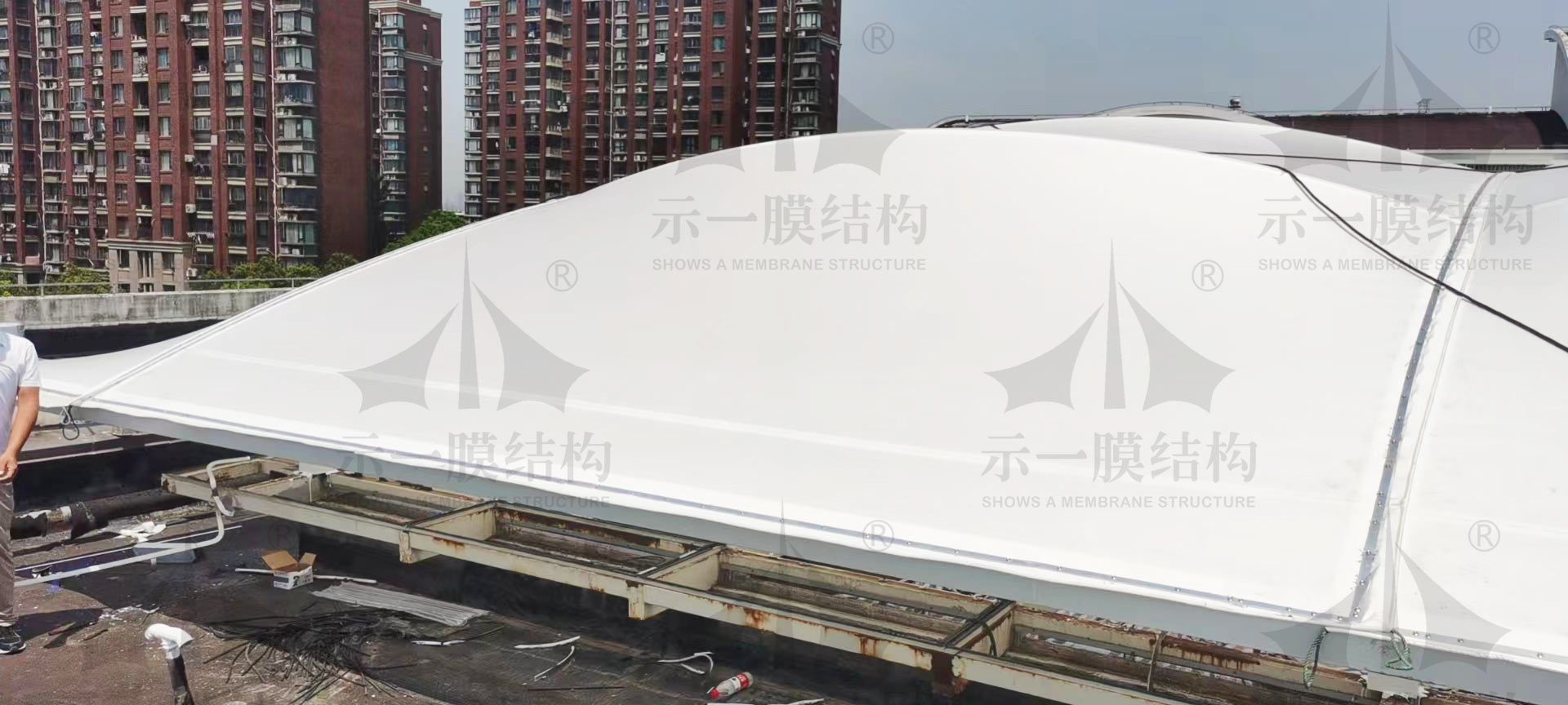 近期有上海示一膜結構承接的一個幼兒園膜結構采光頂棚即將進入收尾工作,此次工程地址是在青浦華新地區,膜材采用的是PVDF高透光建筑膜材,下面我們來介紹一下膜結構頂棚優勢有哪些呢?