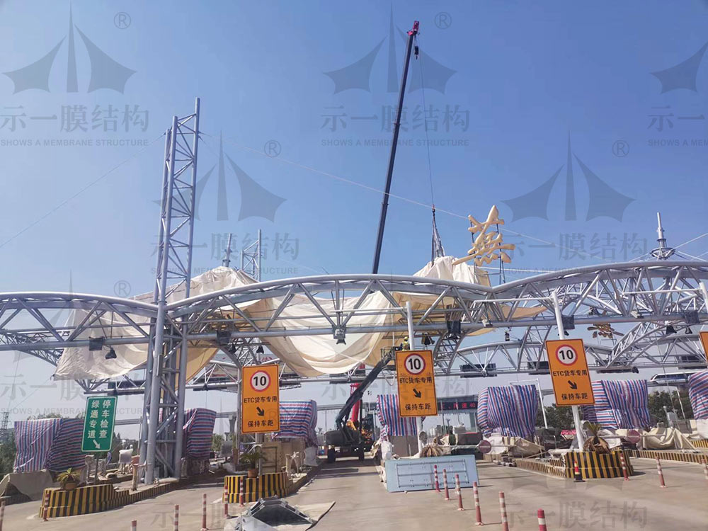嶄新的收費(fèi)站膜結(jié)構(gòu)閃亮登場,造型獨(dú)特,識別性高,采光性好,自潔性好,優(yōu)點(diǎn)眾多。