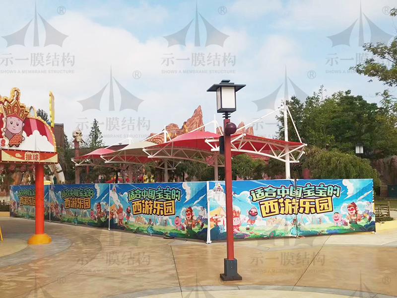 景觀膜結(jié)構(gòu)是人們生活中離不開的一部分,游樂園里的膜結(jié)構(gòu)也隨之越來越多,成為了一道共同的風(fēng)景線,讓人為之驚嘆。這種集設(shè)計(jì)師構(gòu)思魂靈的各種造型的膜結(jié)構(gòu)建筑能給人們帶來時(shí)髦、輕松的休閑感受。膜結(jié)構(gòu)的豐富多彩的用處展示了膜結(jié)構(gòu)構(gòu)件明晰受力的藝術(shù)之美,奇妙的整合周圍的環(huán)境,給人們一種尊貴高雅、浪漫溫馨的感覺。