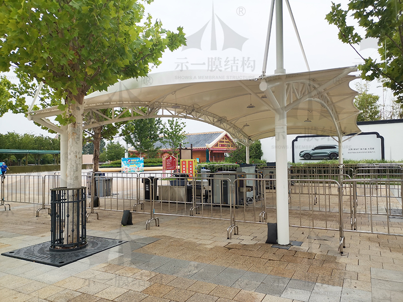 膜結(jié)構(gòu)遮陽雨棚的特別也很多: