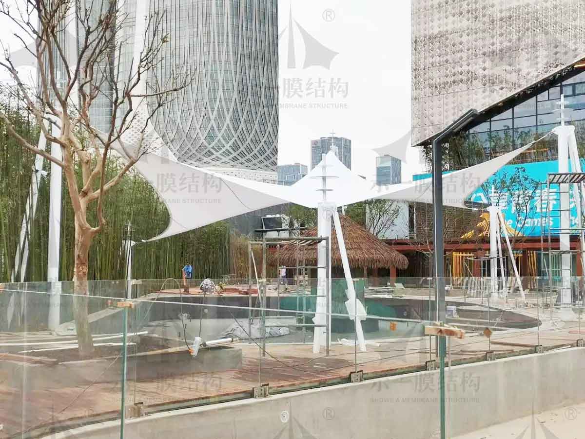 遮陽(yáng)帆造型上多以張拉的形式為主,設(shè)計(jì)上可以是簡(jiǎn)約的,也可以層疊。在顏色的選擇上也可以豐富多彩,不規(guī)則的形狀總能體現(xiàn)出一種大方優(yōu)雅。面料可采用防水紡織布、膜布等,具有很強(qiáng)的張緊度和面料色牢度,除了相對(duì)比較好打理以外,還自潔性能好。