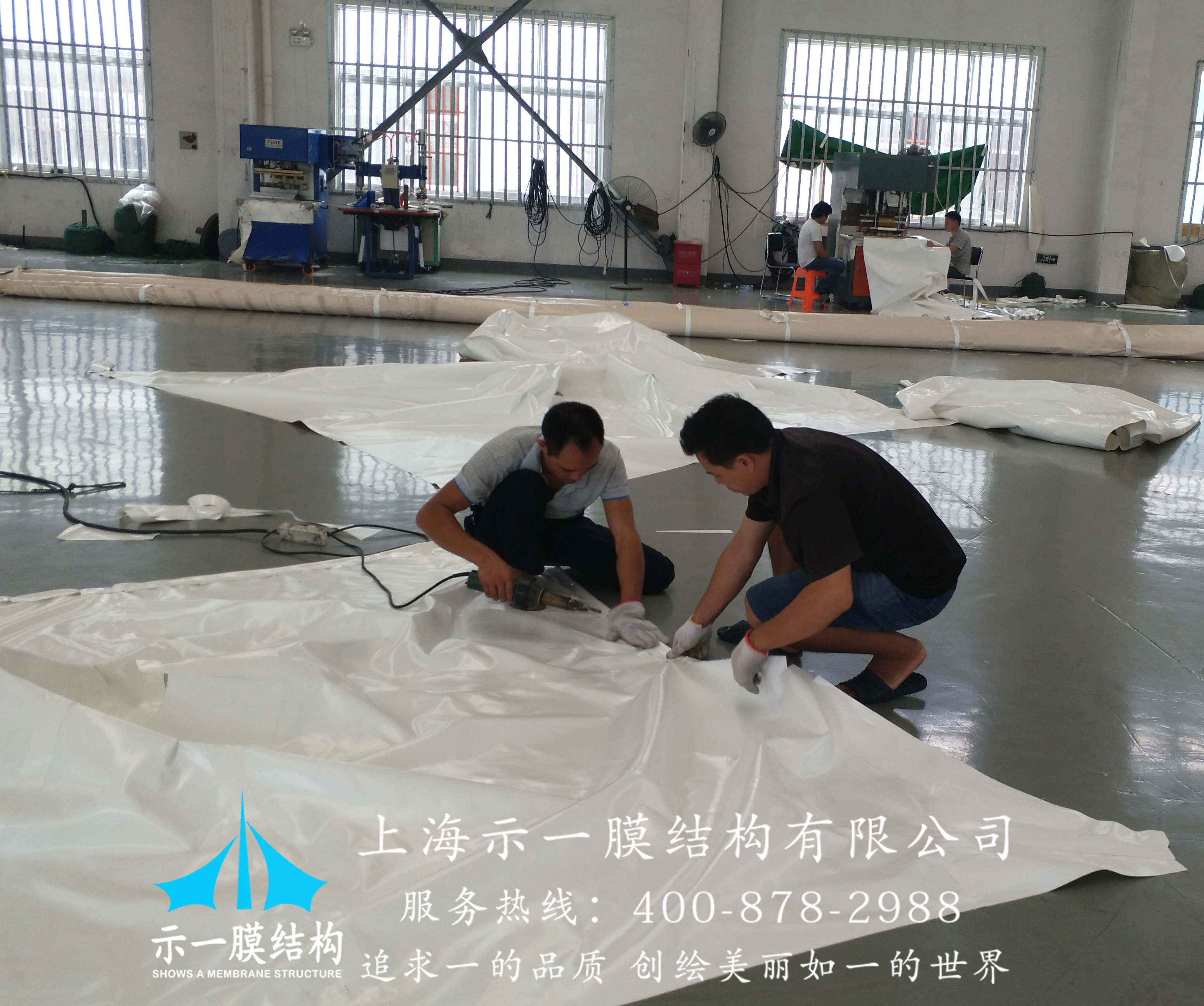 膜結構所用紡織膜材料一般由基布和涂層兩部分組成。基布主要采用聚酯纖維或玻璃纖維材料等;涂層材料主要采用聚氯乙烯和聚四氟乙烯等。膜結構材料起源于歐美,在多個方面和領域得到了廣泛的應用。最適合用于體育場、劇場、飛機場和車站候車室、展覽館、倉庫等建筑。