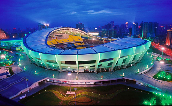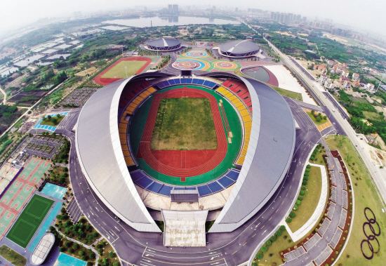 上海周邊的嘉興市體育中心主體育場工程總面積5500平方米,可容納3.5萬名觀眾。看臺采用混凝土框架結構,屋蓋采用鋼管拱形桁架結構,屋面復蓋PVC膜材。該工程是目前我國已建和在建體育場館鋼拱形結構中高度最高、跨度最大的工程之一。