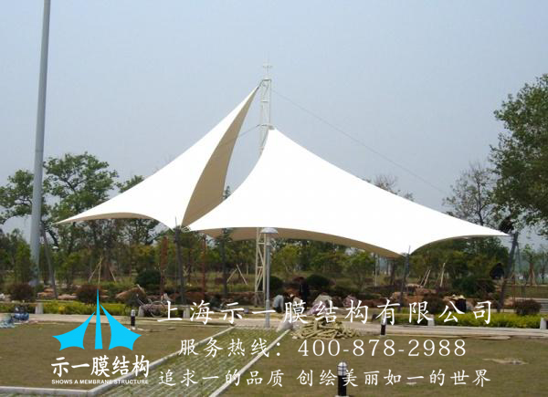目前隨著越來越多的建筑及景觀場所都選用膜結構形式,所以膜結構遮陽棚的材料也引起更多的重視。膜結構遮陽篷材料的選擇很大程度取決于膜結構建筑物的功能、防火要求、壽命、設計和投資金額。所以選擇膜結構材料要注意強度,包括抗拉強度與撕裂強度,耐用性及抗老化性能以及防火性的各種性能。