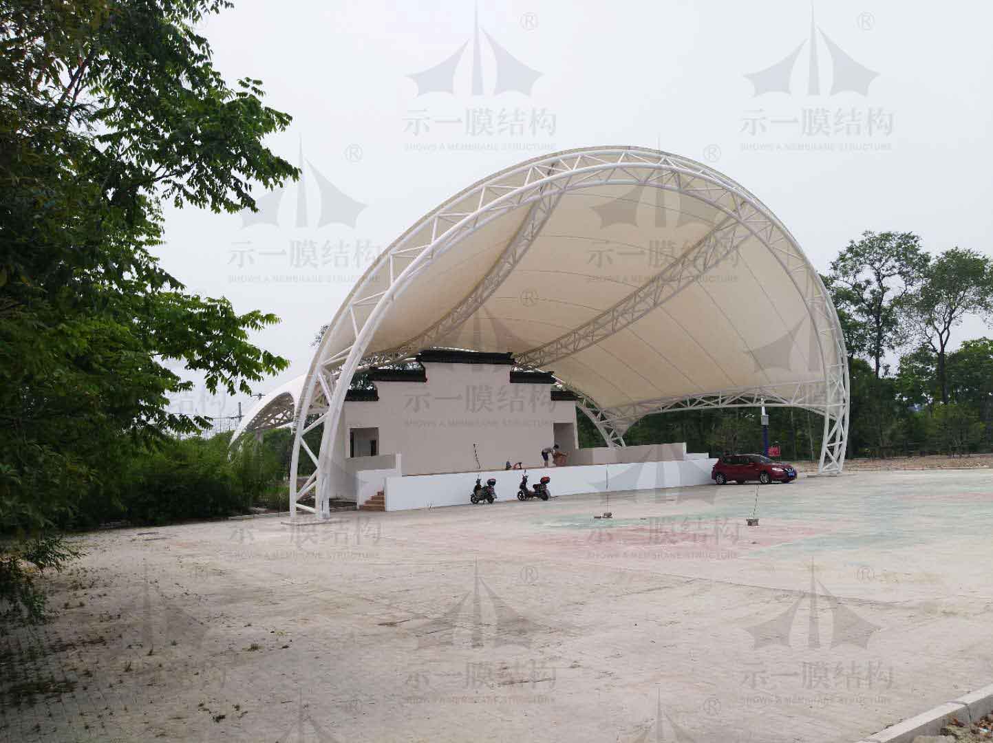 由于其自重輕,抗震服從比較好;膜布局屬柔性布局,梗概忍受很大的位移,不易小我倒塌;且膜資料一般都是阻燃資料,也不易造成失火。