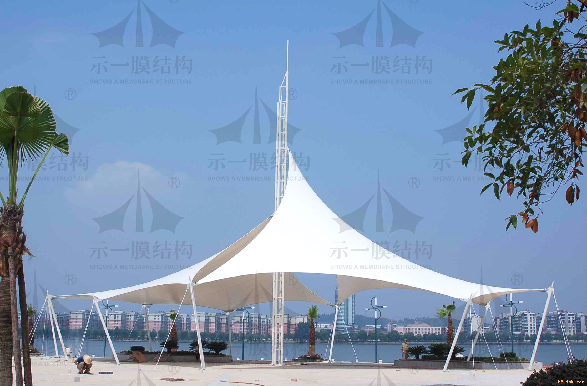 膜結構的膜材都是柔性材質,要通過鋼結構和拉索來提供形態曲面,就需要有一定的張拉力,在膜材與金屬件直接連接時,張拉膜,最怕尖刺和太過粗糙的固定點,張拉力的不均衡也極易造成膜材受損。金屬和膜材的連接部位要保證光滑,并且切實做好防腐防銹處理,膜材對任何缺陷都比較敏感,從制作到運輸到安裝過程中,都要保護好膜材,膜結構車棚,若出現小孔、裂紋等缺陷,膜材的強度和使用壽命將有較大降低。