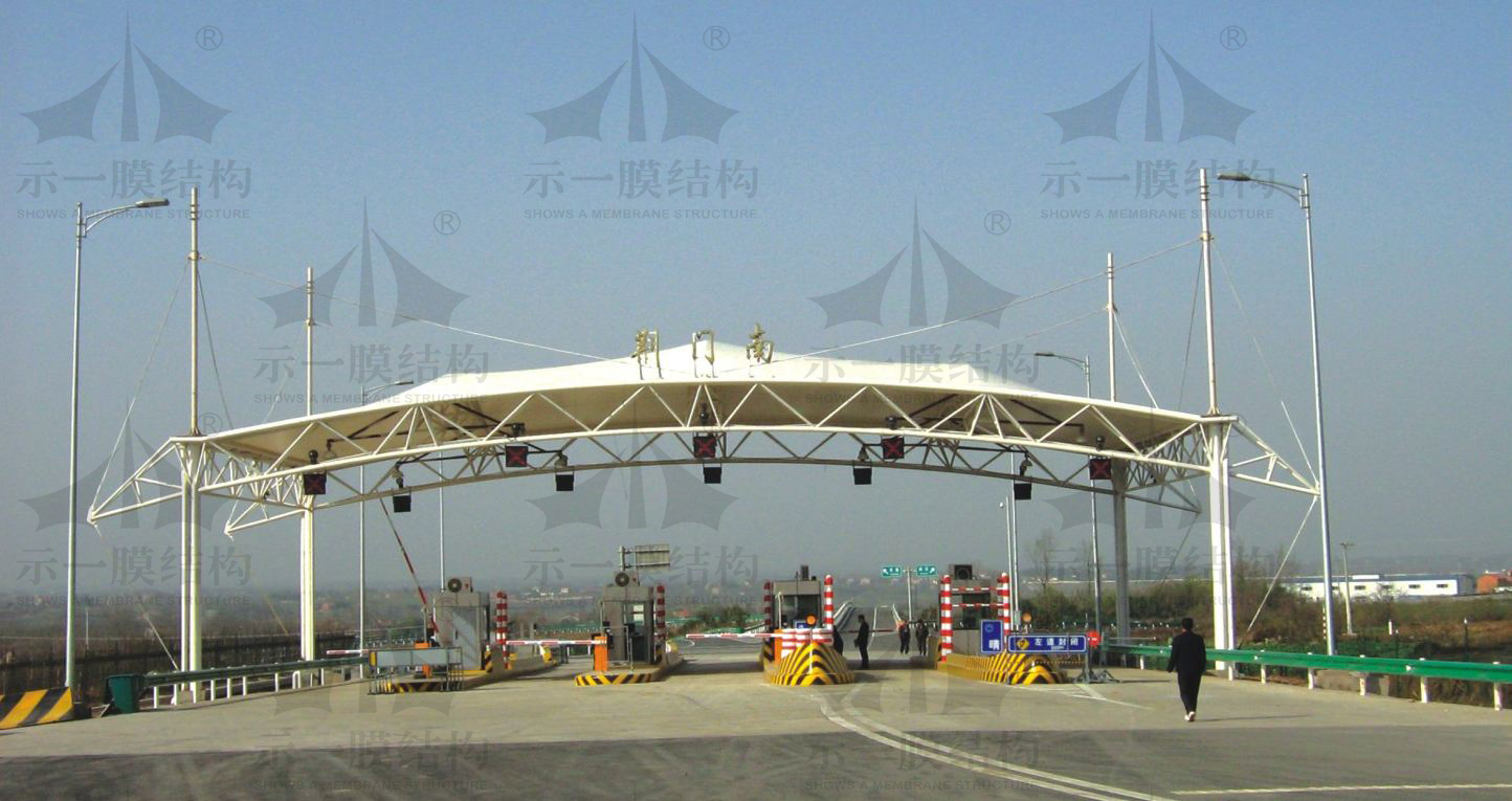 1、高速公路收費站,在城市的進(jìn)口處,具有自己城市明顯特色和韻味的建筑是每個城市發(fā)展的首選,而張拉膜以自己多變的特點柔美的造型,以及夜晚合作彩燈所顯示出的特點成為了首選。