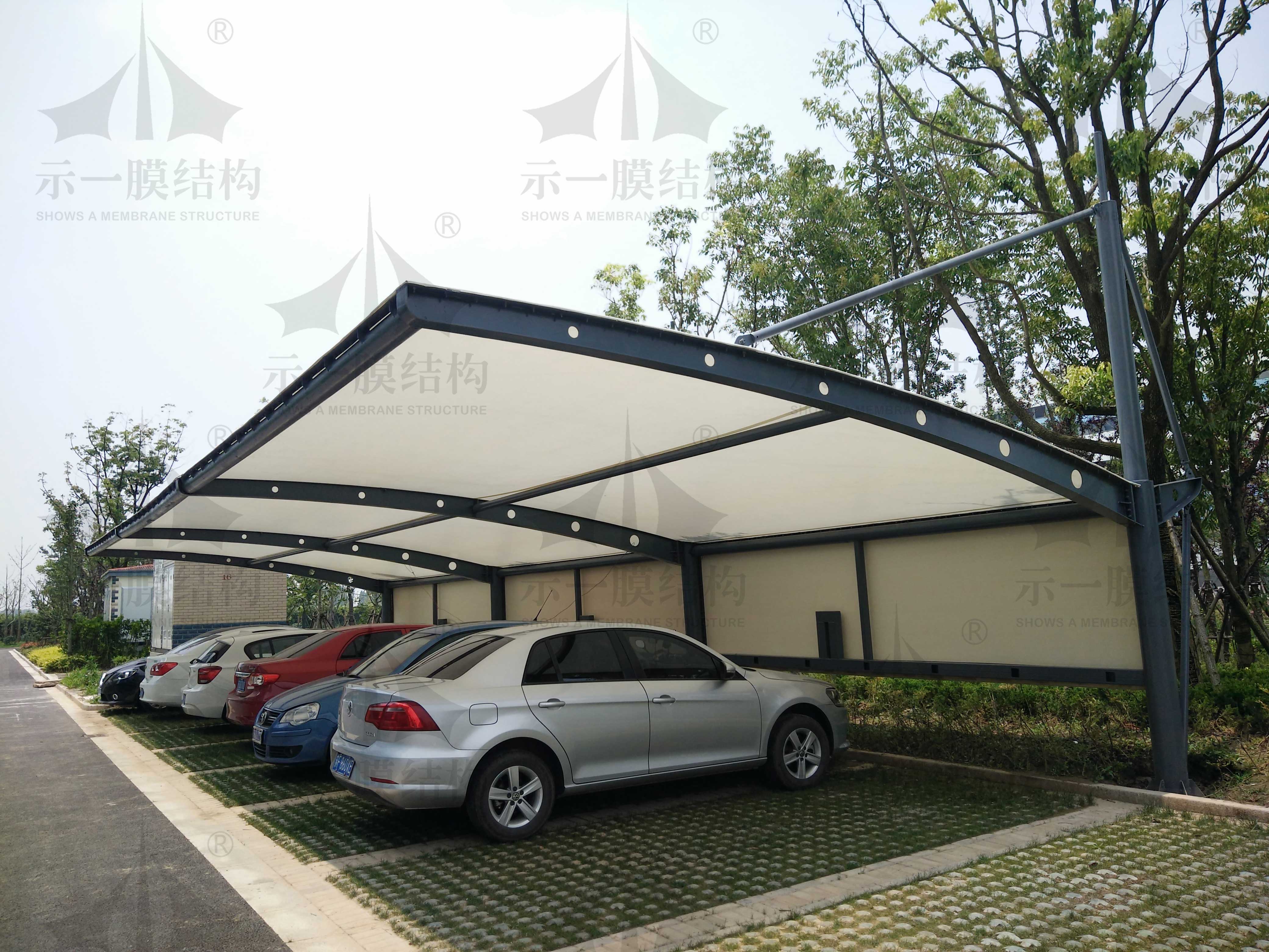 膜結構車棚遮陽棚適用于小汽車、自行車或電動車、公交車停車場等,款式新穎,造型美觀,經濟適用。膜結構車棚的設計技術越來越先進,膜結構材料具有連接可靠、施工方便等特點,最關鍵的是膜材具有足夠的強度和優異的力學性能以及抗老化、耐熱、耐腐蝕等性能,確保車輛在炎炎夏日不會受到烈日侵襲。