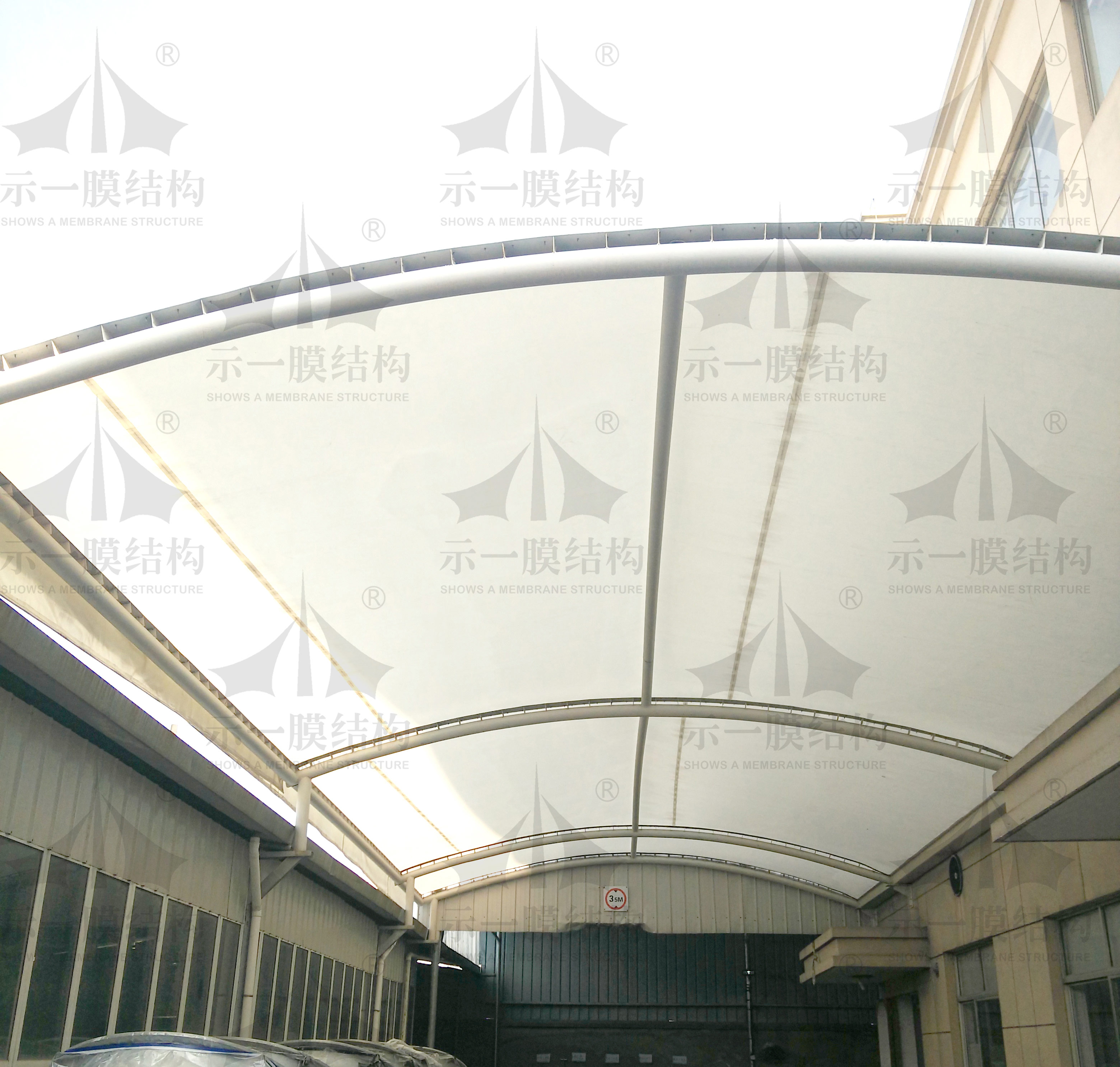 2、耐候耐老化,膜結構雨棚主體構造全部選用高品質、高強度鋁合金材料精加工而成,外表有防紫外線的共擠層,對植物光合作用有良好的作用。雨棚可以使用30年以上。