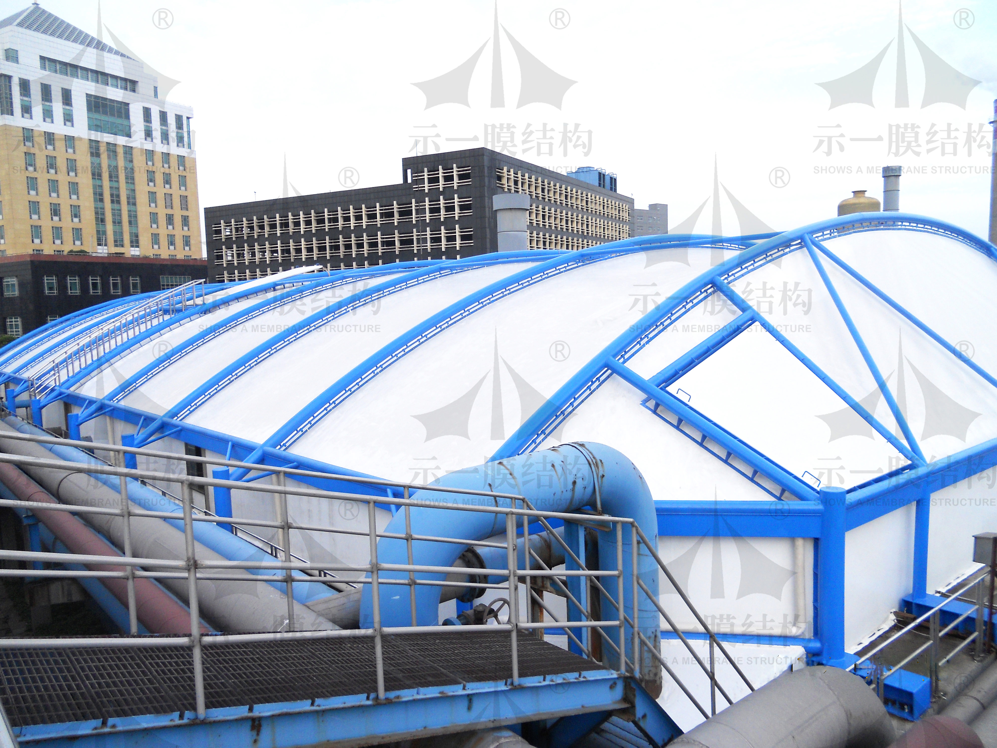 夏日里的膜結(jié)構(gòu)污水池加蓋