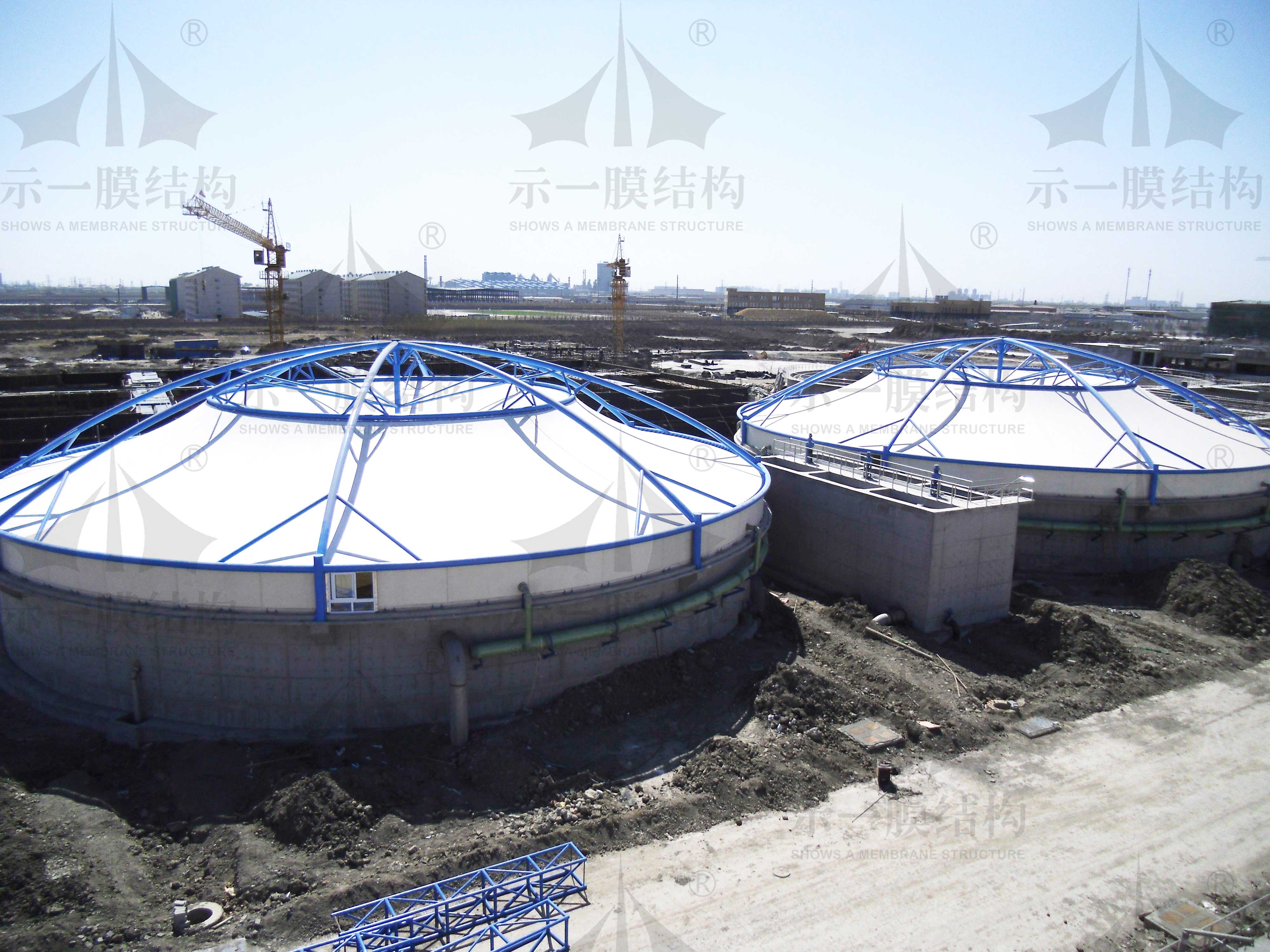 今天我們來圍繞污水池加蓋膜結構氣罩封閉技術展開話題,隨著技術的不斷改進污水池加蓋膜結構技術被大力運用。污水池加蓋膜結構技術通常是采用鋼支撐反吊UV膜結構。這種加蓋工藝可以解決鋼結構由于與腐蝕性氣體接觸而帶來的腐蝕問題,發揮了鋼結構的性能,實現了結構骨架與覆蓋材料的完美結合。