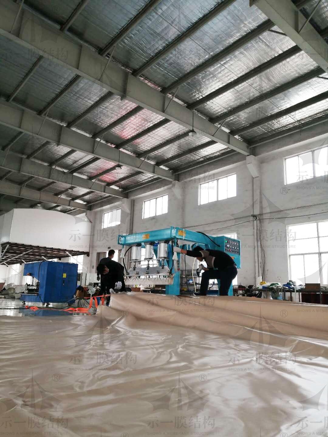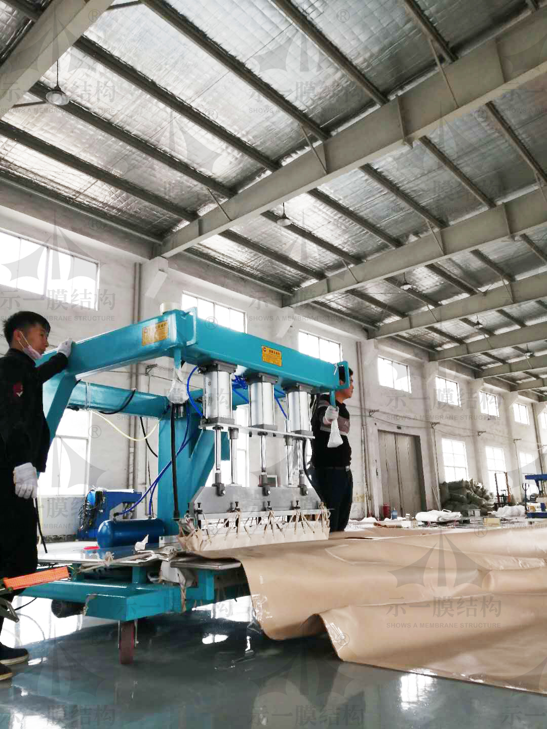 3、對PTFE涂層掩蓋的膜材,需在補丁與原損壞的膜材間加上一層氟化乙丙烯的薄膜,再用專用的手提焊接設備壓緊在補丁上。